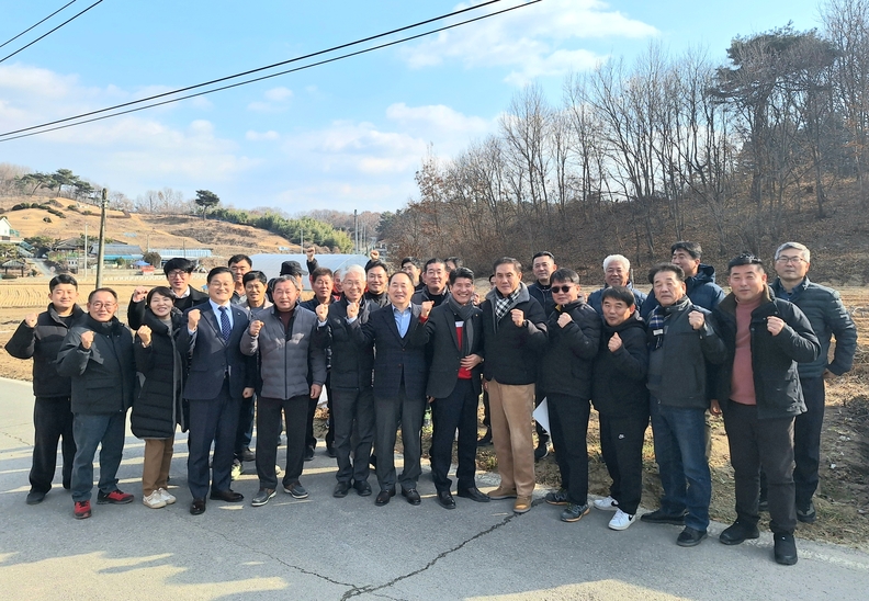 청주시 후계농업경영인 임원들과 농업관련 유관기관 관계자들이 농정간담회를 갖고 기념촬영 하고 있다.
