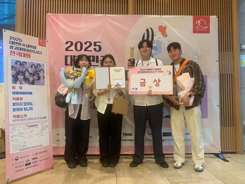 '2025 대한민국 대학생 광고대회(KOSAC)' 전국 본선에서 금상을 수상한 세명대 광고홍보학과 학생팀 '해삐해삐해삐'.