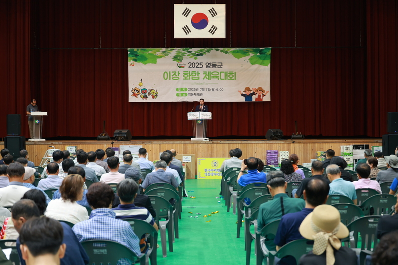 영동군이 7일 영동체육관에서'2025 영동군 이장 화합 체육대회'를 열고 있다.