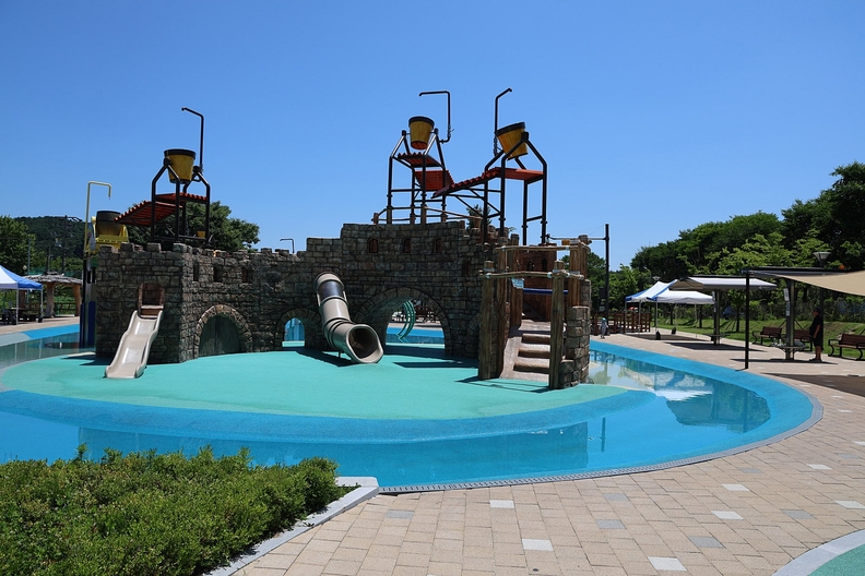 전국 곳곳에서 물놀이 사고가 잇따르는 요즘이지만 이곳 물놀이터의 수심은 30cm 이하로 얕아서 어린이들도 걱정 없이 뛰어놀 수 있다. 바닥에는 미끄럼 방지 재질이 깔려 있어서 안전하다.