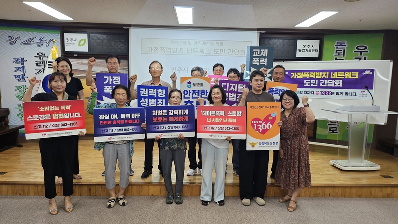 여성긴급전화1366 충북센터 관계자들은 29일 가정폭력방지 네트워크 도민간담회를 개최 후 기념촬영을 하고 있다.