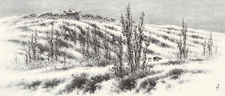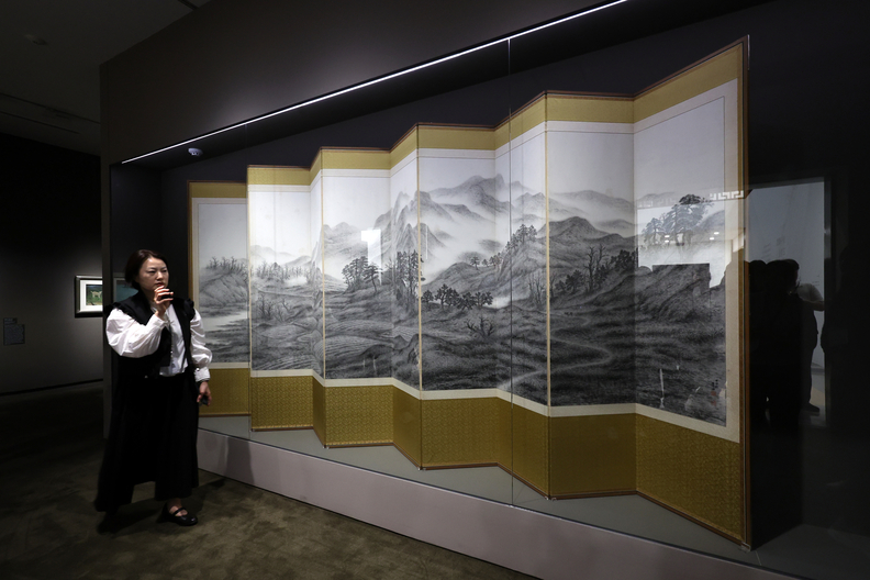 김미금 국립현대미술관 학예연구사가 지난 13일 서울 중구 국립현대미술관 덕수궁에서 광복 80주년 기념전 '향수(鄕愁), 고향을 그리다' 전시작인 이상범 작가의 작품 '귀로'를 설명하고 있다.