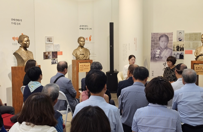 충북여성재단이 27일 충북미래여성플라자 전시실에서 '어윤희, 빛을 되찾다' 행사를 진행하고 있다.