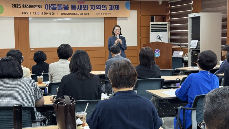 충북여성재단이 28일 충북미래여성플라자에서 '아동 돌봄 틈새와 지역의 과제' 토론회를 진행하고 있다.