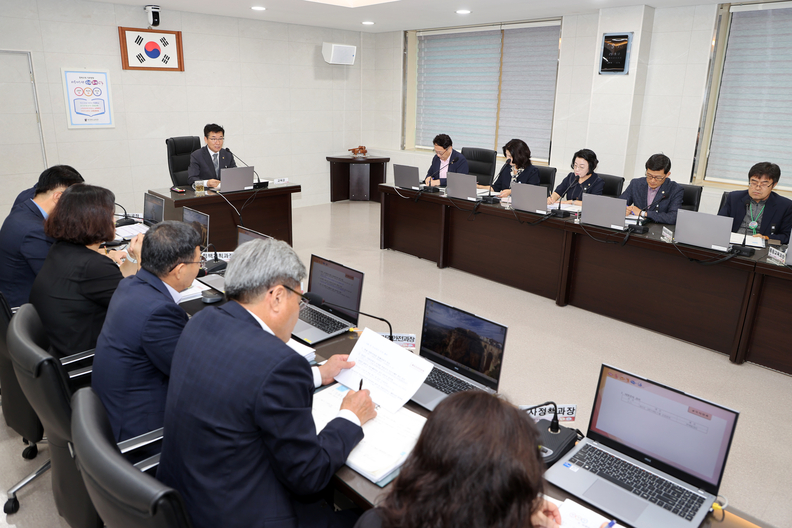 윤건영교육감이 8일 주간정책회의를 주재하고 있다.