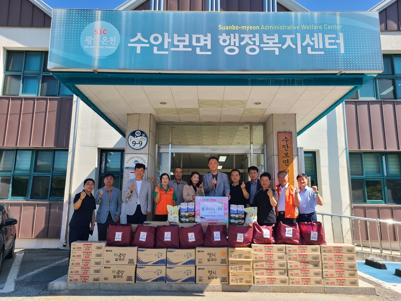 NH농협생명수안보수련원 관계자들이 쌀 꾸러미를 기탁하고 있다.