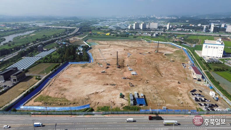 2026년 11월 준공 목표로 청주시 흥덕구 옥산면 오산리 일원에 들어서는 농수산물도매시장 시설현대화사업 부지조성 공사가 80% 공정률을 보이면서 올 하반기 본격적인 건축공사가 진행될 예정이다.