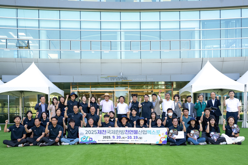 2025 제천국제한방천연물산업엑스포 개막을 일주일 앞두고 엑스포 조직위원회 송수영 공동조직위원장과 김창규 집행위원장 등이 핵심 전시시설을 꼼꼼히 확인하고 있다.