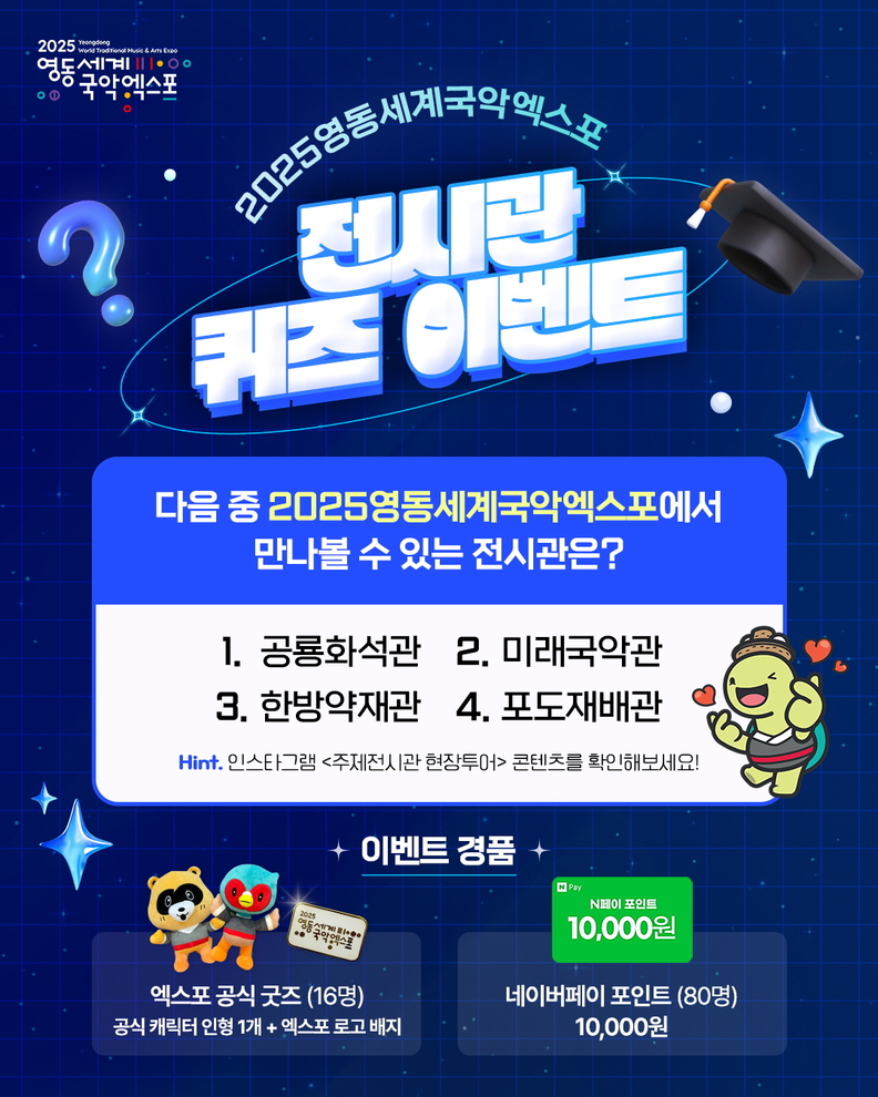 영동세계국악엑스포조직위원회(이하 ‘조직위’)가 엑스포 공식 인스타그램 채널에서 주제전시관 명칭을 맞히는 온라인 이벤트를 진행한다고 밝혔다.