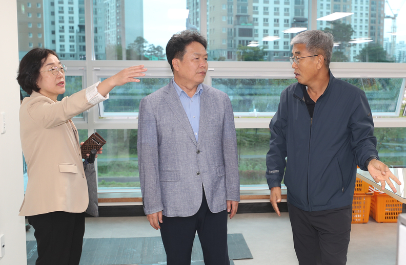 신병대(가운데) 청주부시장이 13일 자원봉사센터 신축 현장 점검을 진행하고 있다.