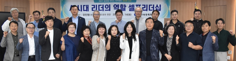 진천상공회의소 8기 글로벌 리더스 아카데미 수강생들이 14일 'AI시대 리더의 역할 셀프리더십' 수업을 마친 뒤 기념사진 촬영을 하고 있다.