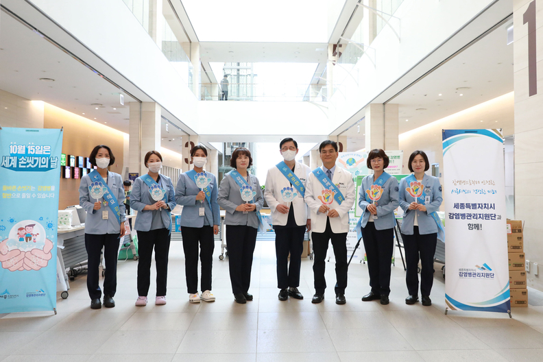 세종충남대학교병원은 15일 본관 1층 로비에서 세종시 감염병관리지원단, 세종시청과 함께 세계 손씻기의 날 캠페인을 하고 있다.