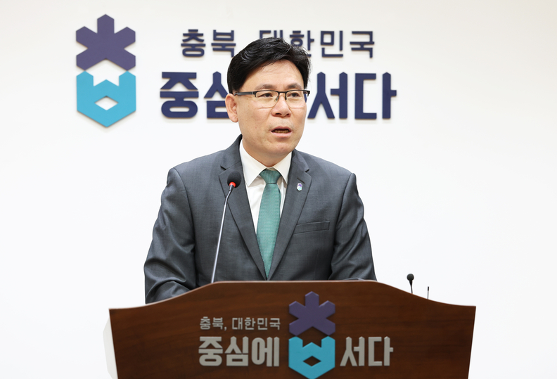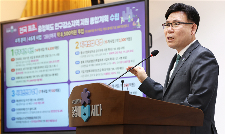이동옥 충북도 행정부지사가 15일 도청에서 인구감소지역 지원 종합계획에 대한 브리핑을 하고 있다.