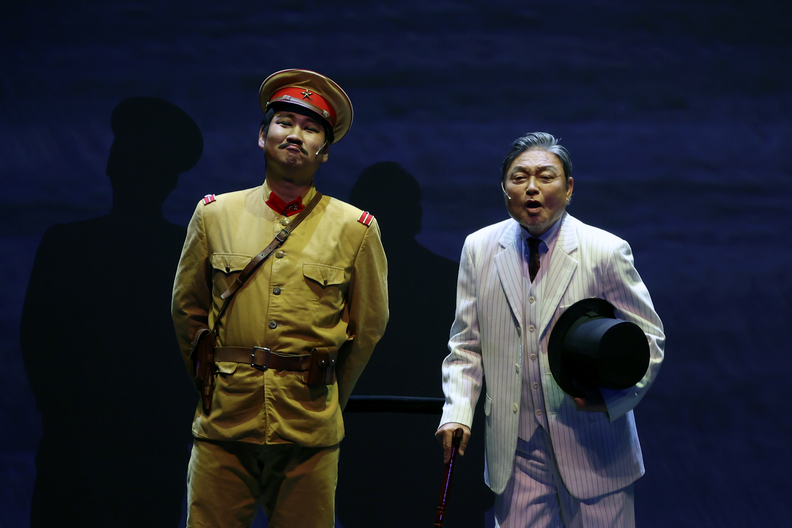 배우들이 무대에서 악극 '카츄샤는 흘러간다'를 공연하고 있다.