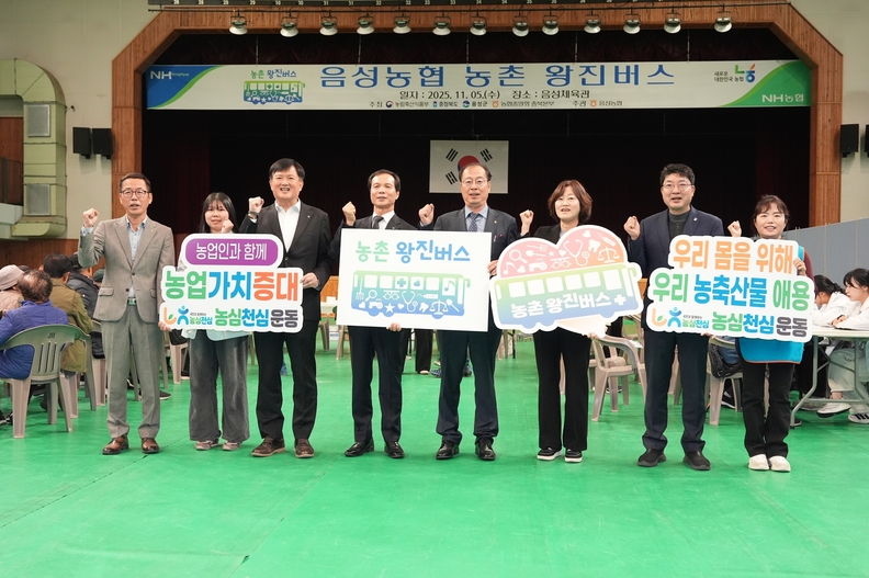 5일 음성군, 농협 음성군지부, 음성농협이 '농촌 왕진버스'를 운영하면서 퍼포먼스를 하고 있다.