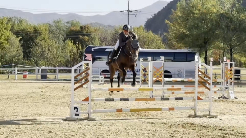 중원대 승마부 조성재 선수가 '중원이'와 함께 장애물을 뛰어넘고 있다.