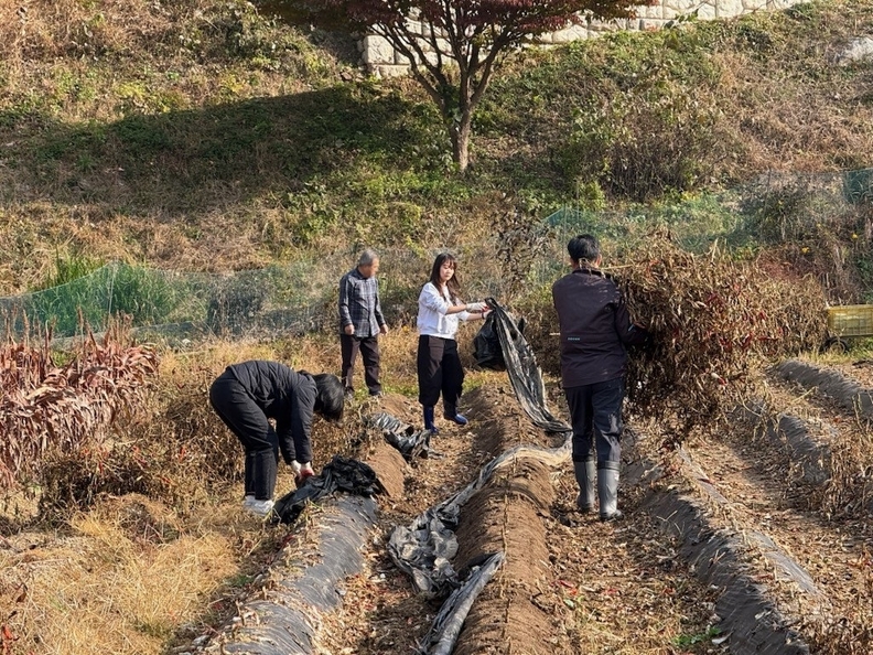 6일 음성군 평생학습과(과장 장정자) 직원들이 소이면 봉전리 농가를 방문해 고추 수확과 고춧대 뽑기 농촌일손 돕기를 펼치고 있다.