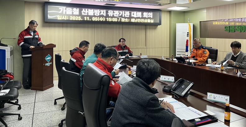 최승환 제천부시장 주재로 관계기관 합동 산불 대책 회의가 열리고 있다.