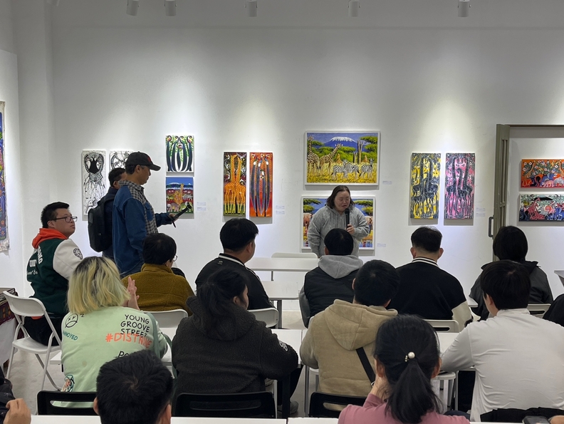충청대학교 발달장애 대학생들과 충북지역 장애인단체 소속 참가자들이 지난 7일 경기 양평군 어메이징 아웃사이더 아트센터 대표인 정은혜 작가의 말에 귀를 기울이고 있다.