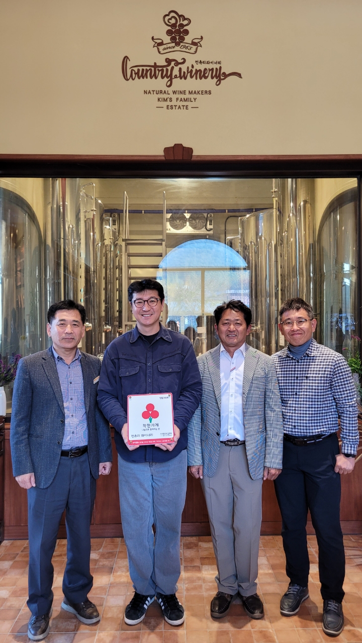 영동군 영동읍 지역사회보장협의체(민간위원장 김민수)는 10일 영동읍에 위치한 컨츄리와이너리 (대표 김덕현)를 착한가게로 지정하고 현판을 전달했다.