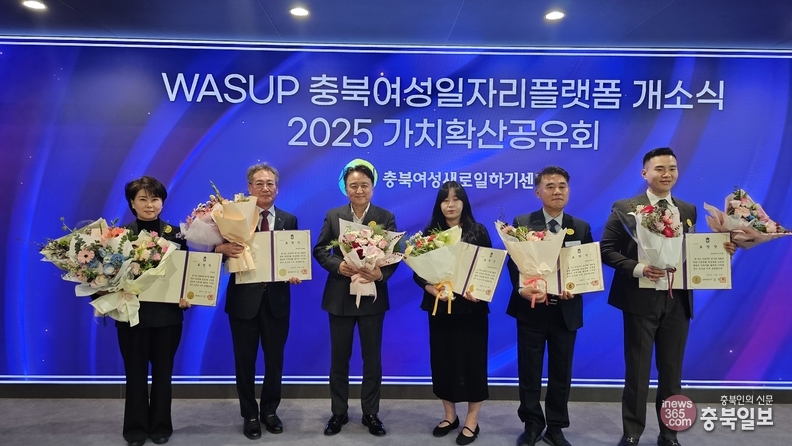 10일 열린 'WASUP충북여성일자리플랫폼'개소식에서가족친화우수기업 및 확산유공 표창 수상자들이 기념촬영하고 있다.