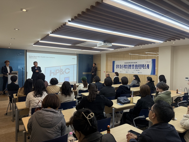 충북인자위와 교육청이 주관한 직업계고 학부모 우수중소기업 탐방프로그램이 (주)에이치피앤씨에서 진행되고 있다.