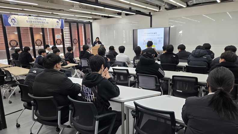 증평공업고등학교 전자과 학생들이 12일 충북대학교 반도체공학과 교수진으로부터 반도체 원리와 교육과정에 대한 설명을 듣고 있다.
