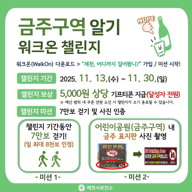 제천시보건소가 전 시민을 대상으로 시행하는 '금주구역 알기 걷기 챌린지'.