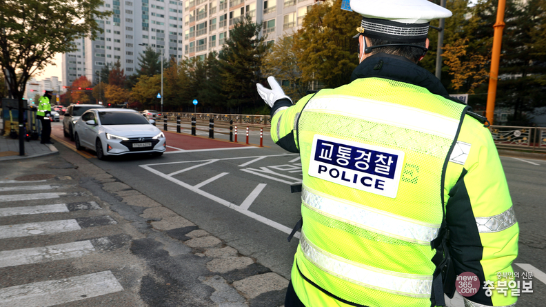 2026학년도 대학수학능력시험일인 13일 청주 주성고등학교 수능 시험장 앞에서 교통경찰과 모범 운전자들이 교통정리를 하고 있다.
