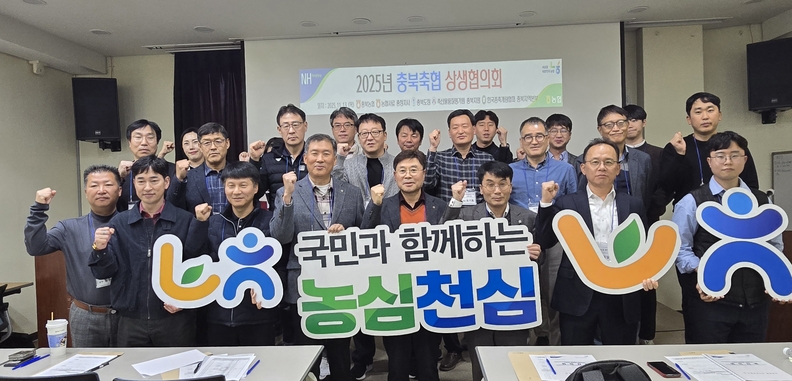 충북축협 상생협의회 참석자들이 기념촬영하고 있다.