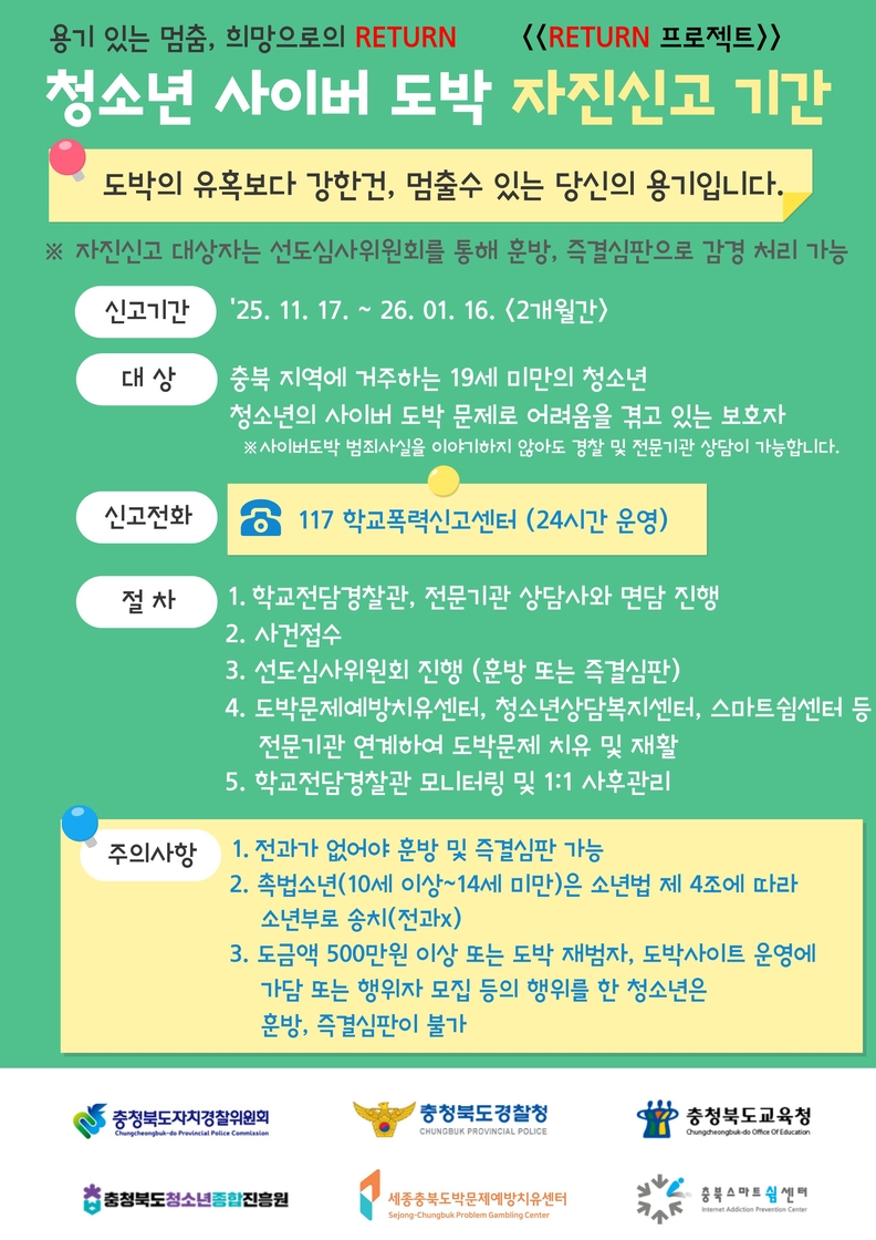 '청소년 사이버 도박 자진신고(RETURN 프로젝트)' 운영 홍보 포스터.