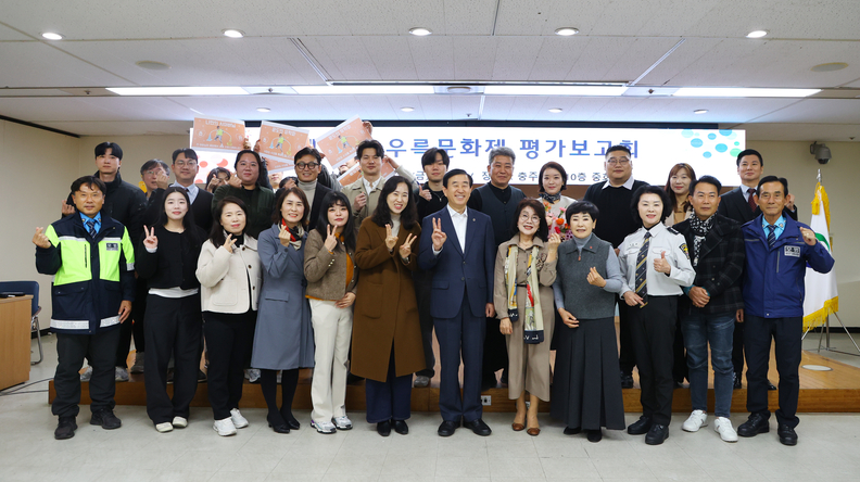 제53회 우륵문화제 유공자 시상 및 평가보고회 참석자들이 단체사진을 찍고 있다.