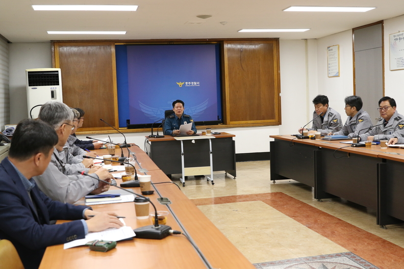 충주경찰서에서 충주댐 준공 40주년 행사 대비 안전대책회의가 열리고 있다.