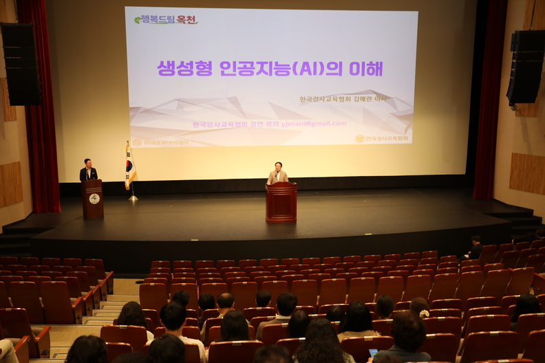 옥천군이 군정 전반에 인공지능(AI)을 접목한 행정혁신에 속도를 내고 있다. 사진은 지난 4월 옥천 문화예술회관에서 열린 공직자들을 대상으로 한 ‘생성형 인공지능(AI)의 이해’ 교육.
