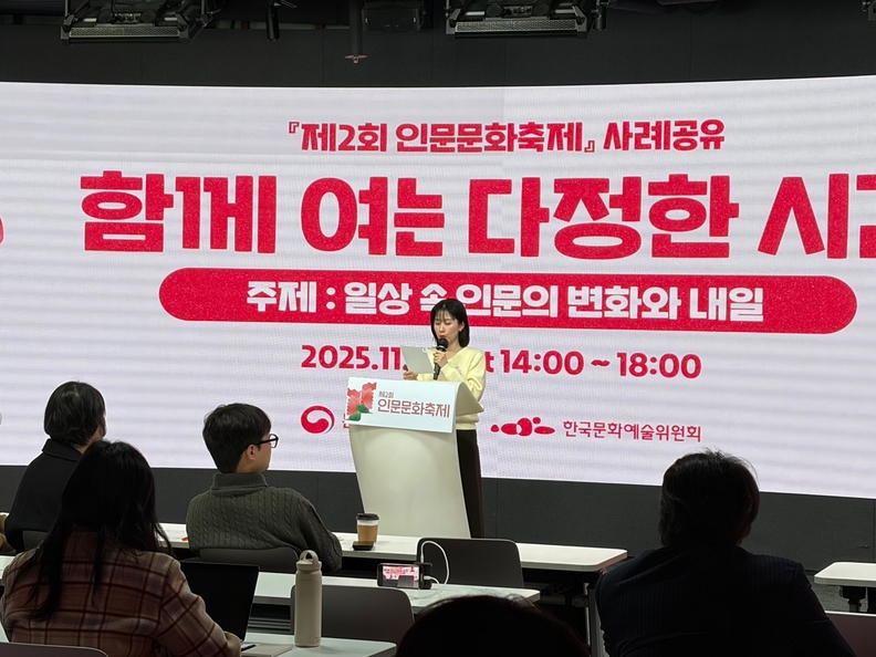 제천문화재단 관계자가 '2025 중장년 인문프로그램 지원 공모사업'에서 우수사례를 발표하고 있다.
