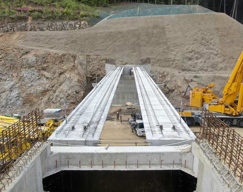 기존 거더의 단점을 보완하고 장점을 극대화한 신개념 ‘I.N.B거더’를 사용해 시공 중인 교량.