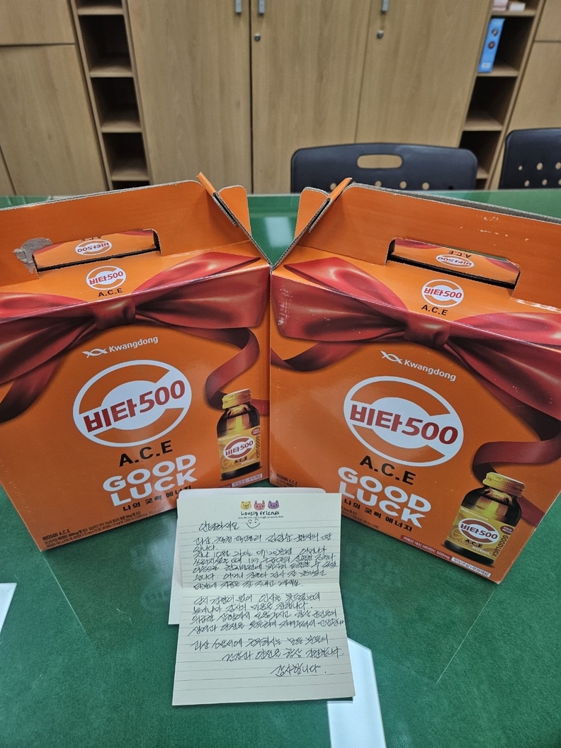 구급 수혜자 가족이 보내온 감사편지와 음료박스.