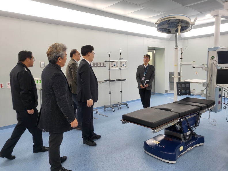 이동옥 충북도 행정부지사가 병원 관계자들과 3일 국립소방병원에 방문해 개원 준비 사항을 확인하고 있다.