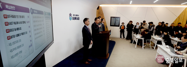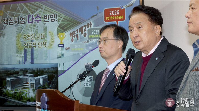 충북도가 내년도 정부 예산을 9조7천144억원 확보했다. 김영환 충북지사가 3일 충북도청 브리핑룸에서 2026년 주요 정부예산 확보 결과를 설명하고 있다.