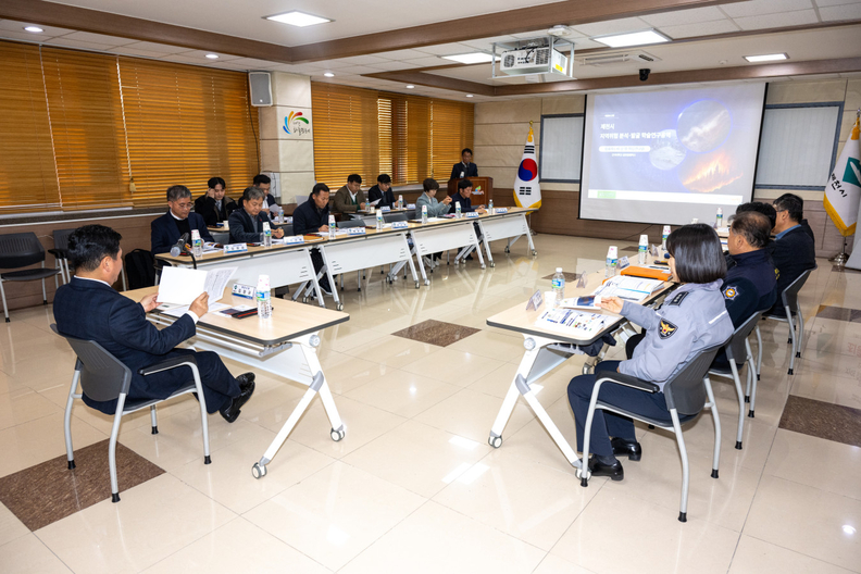 '제천시 지역 위험분석·발굴 연구 용역 최종보고회' 참석자들이 시의 안전 정책 방향을 논의하고 있다.
