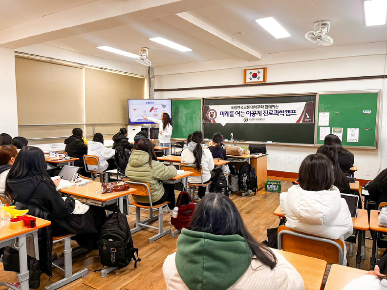 교통대에서 마련한 이공계진로과학캠프에 충주지역 여중생들이 참여하고 있다.