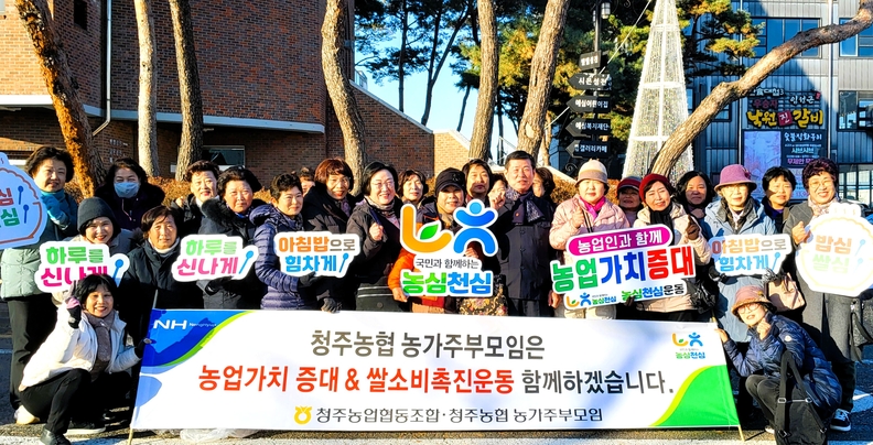 이화준(앞줄 가운데 오른쪽) 조합장이 선진지 견학에서 청주농협 농가주부모임 회원들과 기념촬영을 하고 있다.