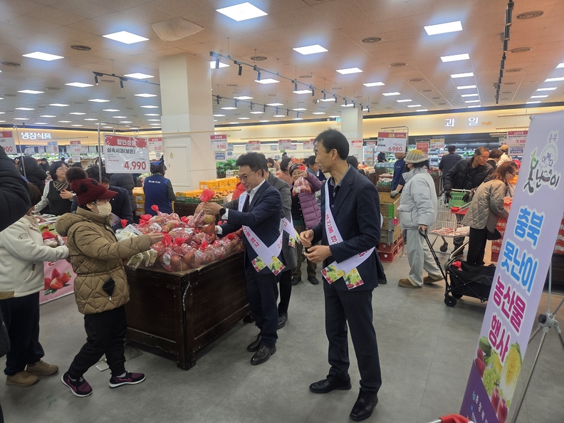 하나로마트 청주점에서 못난이 농산물 판촉행사가 진행되고 있다.