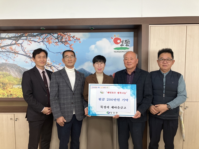 양강면 묵정리 새마을금고(이사장 박상용)에서 지난 8일 양강면사무소 맞춤형복지팀을 찾아와 어려운 이웃을 위하여 써달라며 현금 200만 원을 기탁했다. 왼쪽에서 4번 째 박상용 이사장.