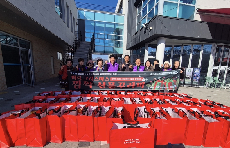 제천시 봉양읍 지역사회보장협의체 위원들이 '행복이음 서비스 선물사업'인 '미리크리스마스 깜짝 선물꾸러미 전달'에 앞서 화이팅하고 있다.