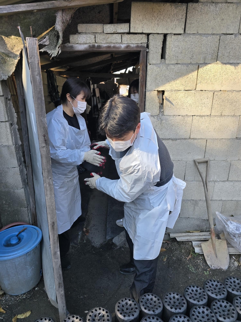 LG에너지솔루션 오창 에너지플랜트 임직원들이 사랑의 연탄나눔 봉사를 하고 있다.