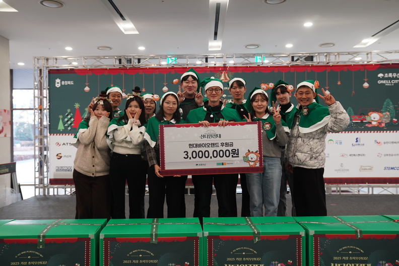 '2025 산타원정대 in 충북' 선물포장식에 참여한 현대바이오랜드 임직원들이 도내 아동들의 건강한 성장을 응원하고 있다.