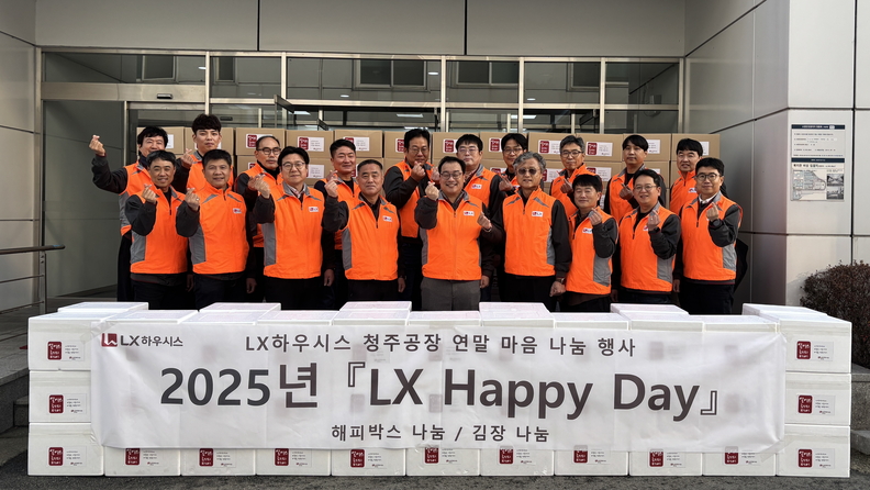 LX하우시스 청주공장이 11일 '2025 LX Happy Day'를 진행하고 기념촬영하고 있다.
