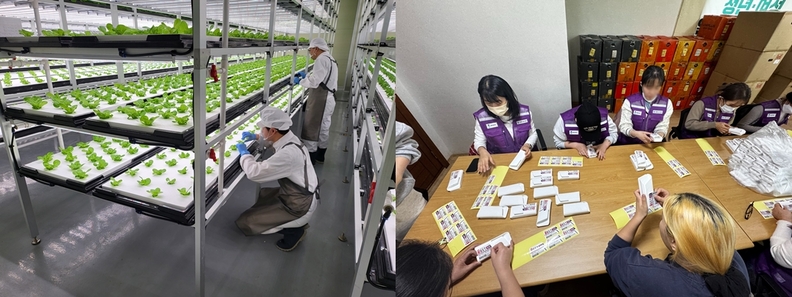 충북형 도시근로자(왼쪽)와 일하는 기쁨 사업에 참여한 도민이 작업하는 모습.