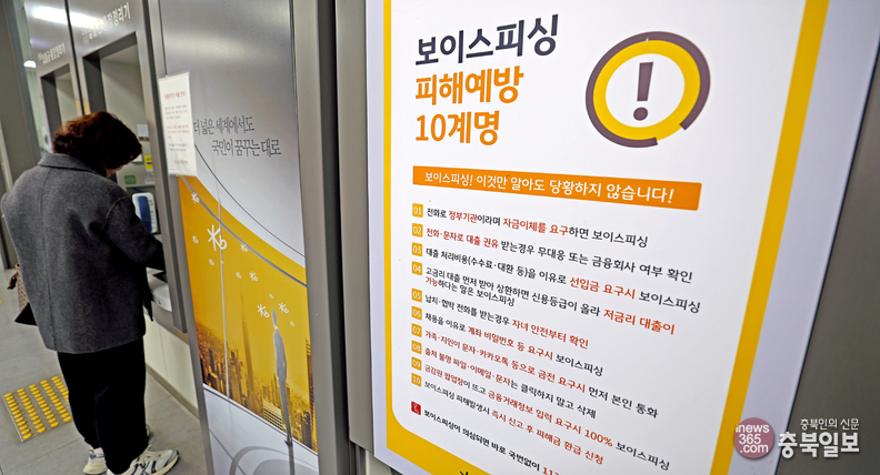 충북경찰청에 따르면 도내 보이스피싱 발생 건수는 감소했으나 피해액은 오히려 증가한 것으로 나타났다. 16일 청주의 한 은행 자동화기기 창구에 보이스피싱 피해 예방 10계명 안내문이 게시돼 있다.